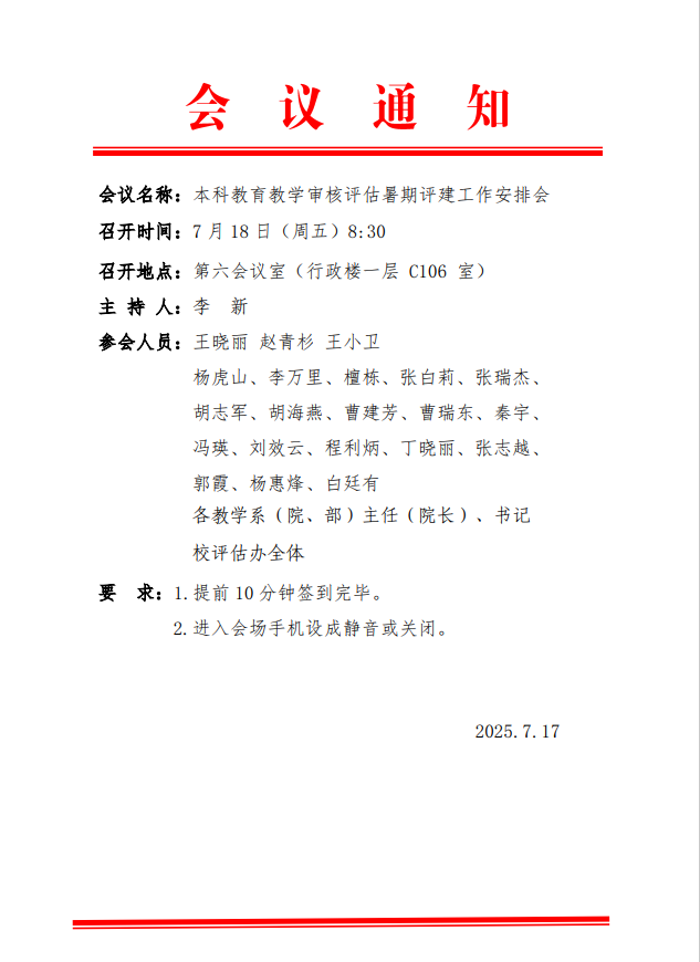 本科教育教学审核评估暑期评建工作安排会